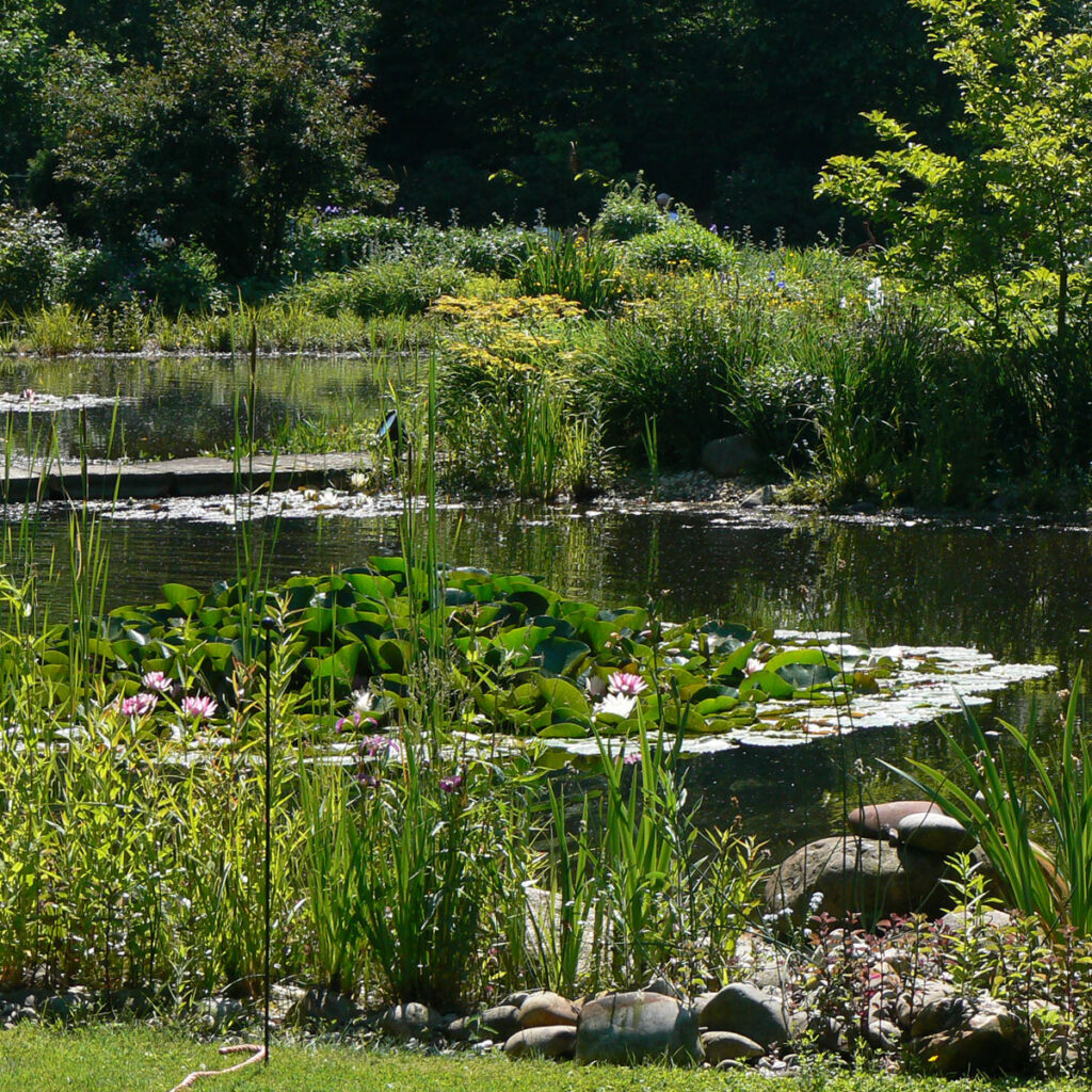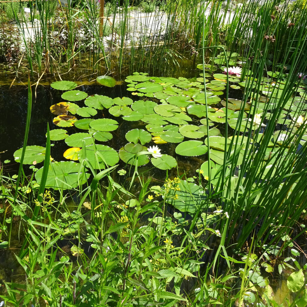 Ein naturnah gestalteter Teich lebt vom Gleichgewicht. Die richtige Auswahl der Pflanzen, abgestimmt auf Wasserhärte, Nährstoffgehalt und Wassertiefe, ist entscheidend. Ist das biologische System stabil, bleibt das Wasser klar, Mücken vermehren sich nicht übermäßig und Frösche halten sich akustisch zurück.