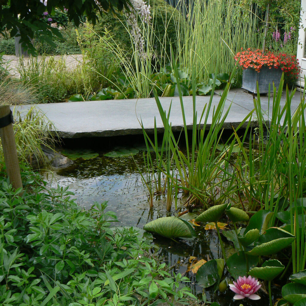 Wasser bringt Dynamik in den Garten. Es glitzert im Sonnenlicht, reflektiert Himmel und Pflanzen und schafft Orte der Ruhe. Gleichzeitig ist es ein wertvoller Lebensraum. In der Nähe von Wasser entfaltet sich eine außergewöhnlich vielfältige Pflanzen- und Tierwelt.