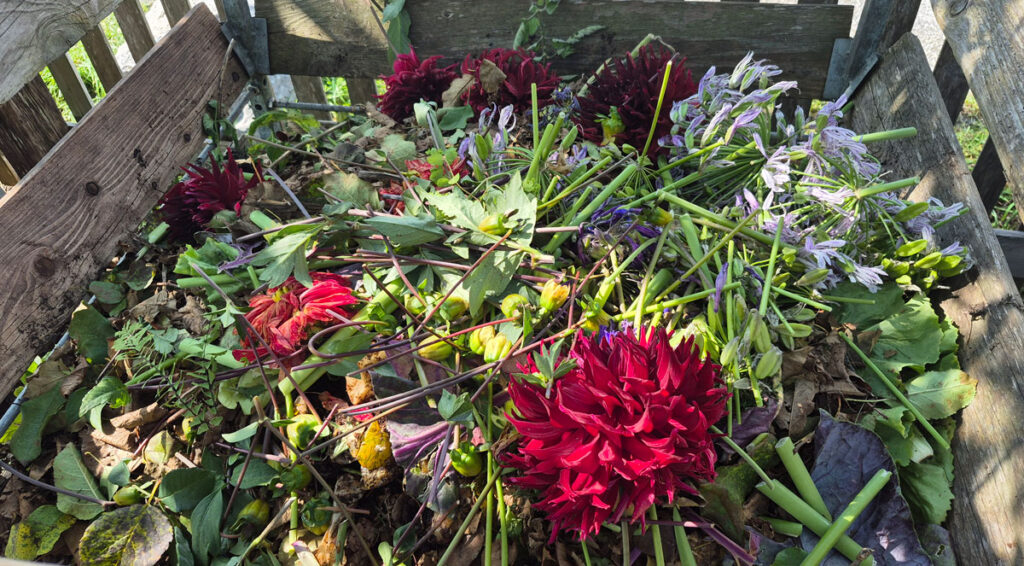 Im Oktober gibt es reichlich Nachschub für den Kompost. Damit die Kompostierung gut gelingt, sollte man die Abfälle richtig schichten. Grobe Pflanzenreste und Laub sollten zuvor gehäckselt werden. Dann bildet man immer abwechselnd eine 10 cm dicke Schicht aus nassen Abfällen z.B.(Obst, Küchenabfälle, Rasenschnittgut) und eine ebenso dicke Schicke aus trockenen Abfällen (gehäckseltes Laub, Äste, Staudenschnittgut). Zu dicke Schichten aus nassen Abfällen faulen und sticken entsprechen. Zu dicke trockenen Schichte verrotten zu langsam.