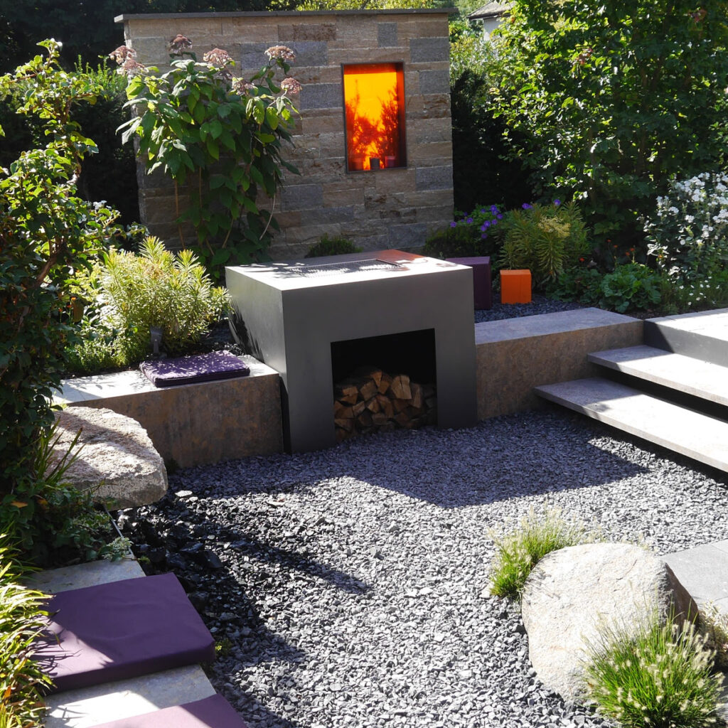 Wer regelmäßig grillt, kann hier einen fest installierten Grillplatz mit gemütlichen Sitzplätzen einrichten.