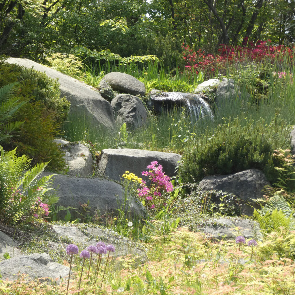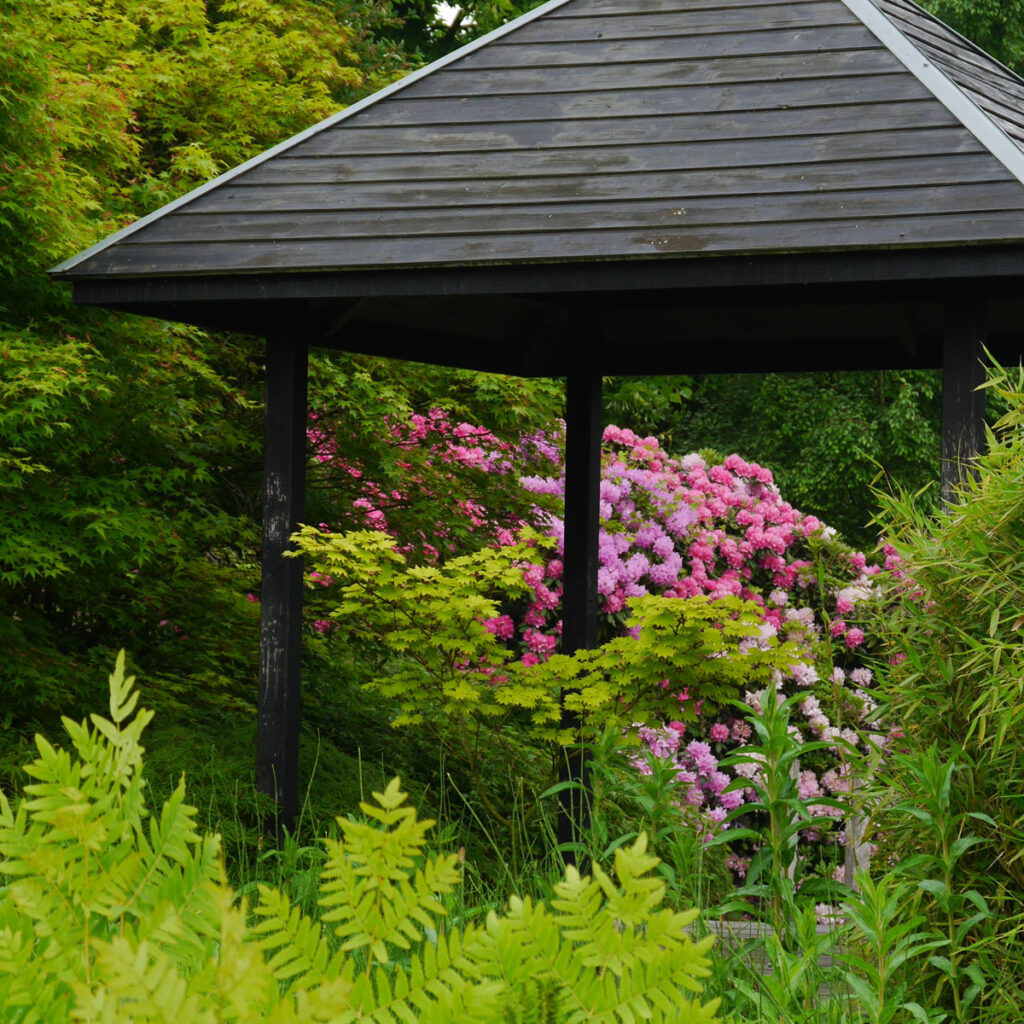 Im Frühling begeistern Zierkirschen, Magnolien und Azaleen, im Sommer folgen Hortensien und Pfingstrosen, während im Herbst die intensive Färbung der Ahornblätter den Garten prägt. Dazwischen sorgen immergrüne Pflanzen und formgeschnittene Sträucher für Beständigkeit und Ruhe.