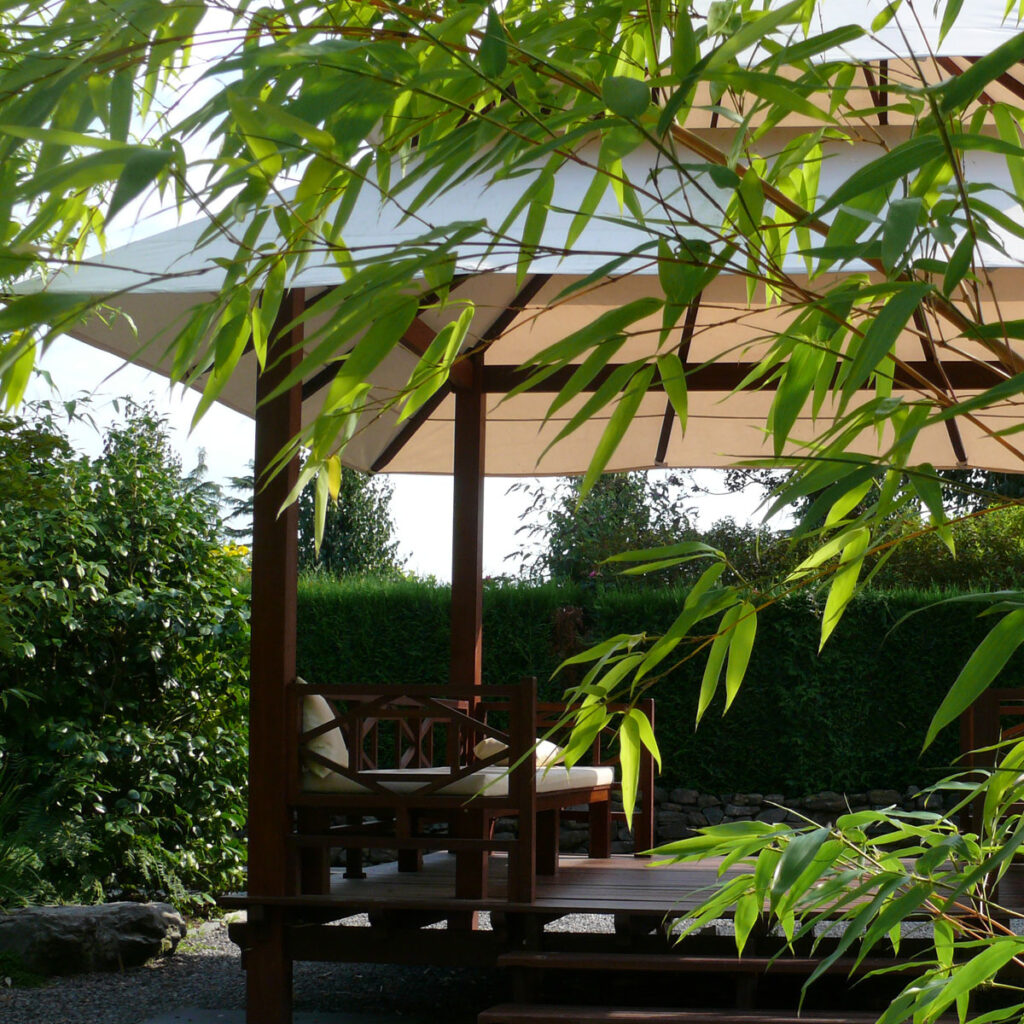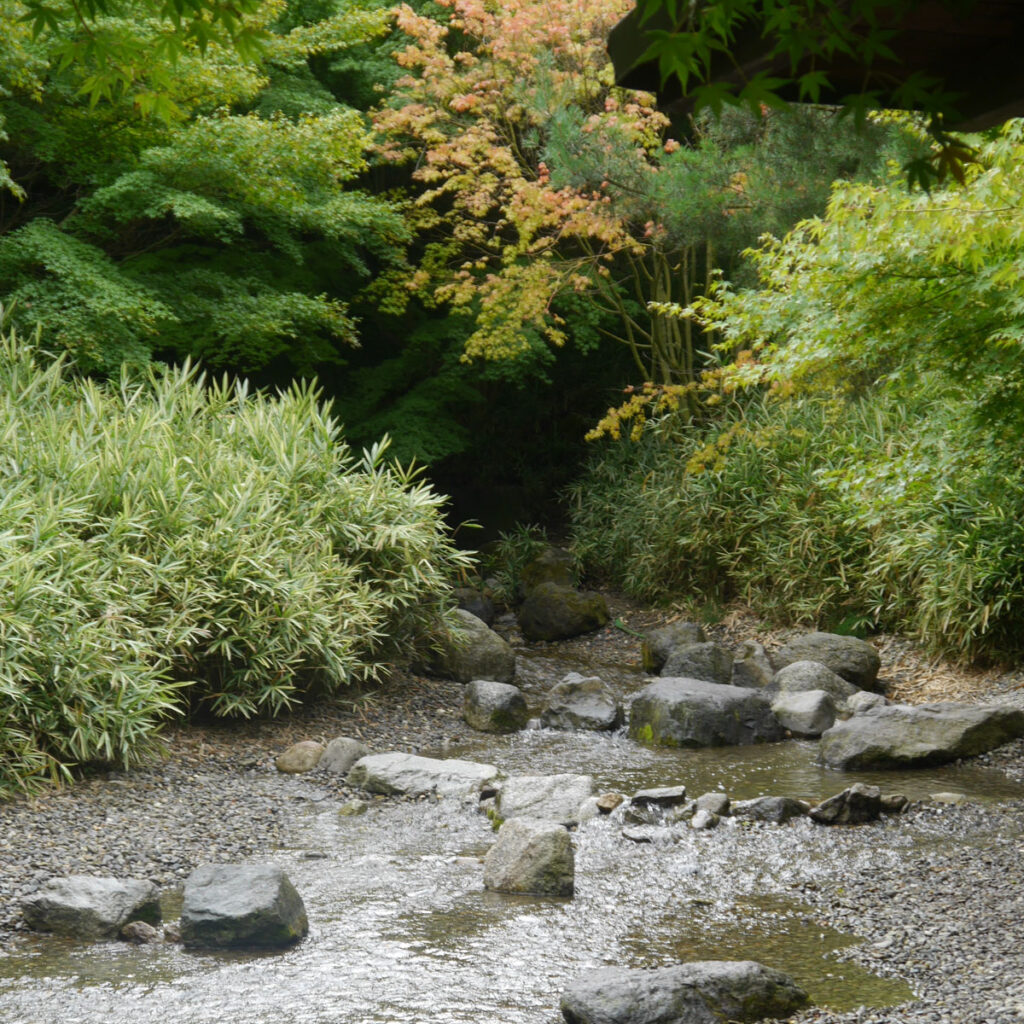 Typisch für japanische Gärten sind Elemente, die alle Sinne ansprechen. Das leise Plätschern von Wasser, das Rascheln von Bambus im Wind oder das rhythmische Geräusch eines Bambusrohrs, das sich mit Wasser füllt und wieder entleert, verstärken die beruhigende Wirkung.