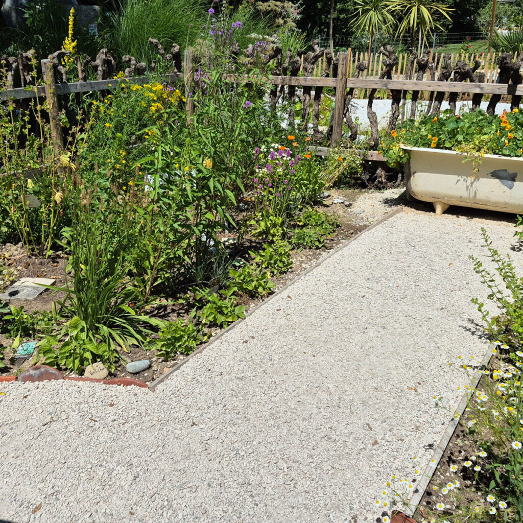 Auch die Wege wollen gut durchdacht sein: Hauptwege sollten mindestens 100 Zentimeter breit sein, damit eine Schubkarre problemlos hindurchpasst. Beeteinfassungen sorgen nicht nur für eine klare Struktur, sondern können zusätzlich Schnecken fernhalten.