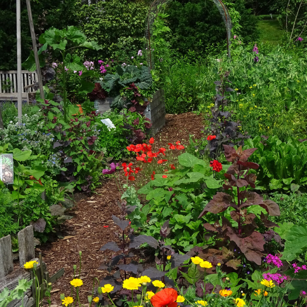 Der klassische Gemüsegarten in Reih und Glied weicht zunehmend einer lockeren, naturnahen Gestaltung. Gemüse, Kräuter und Blumen wachsen bunt gemischt im Beet.