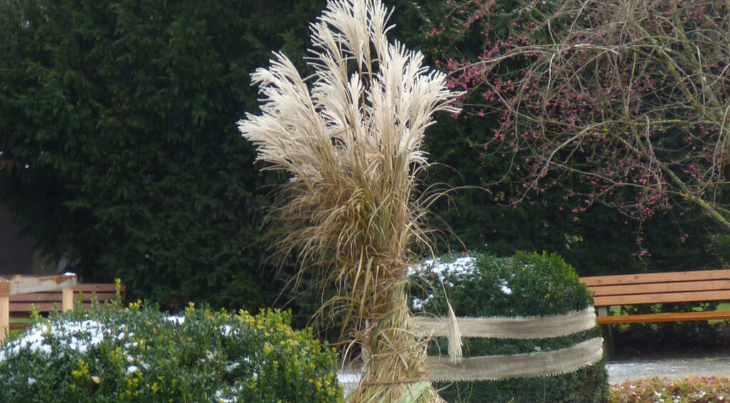 Empfindliche Pflanzen wie Rosen, Azaleen, Bambus oder Hibiskus benötigen zusätzlichen Schutz. Decken Sie die Wurzelbereiche mit Laub oder Stroh ab und häufeln Sie Rosen bis über die Veredelungsstelle an. Große Ziergräser wie Pampasgras werden am Schopf zusammengebunden – so bleibt der Vegetationspunkt trocken.