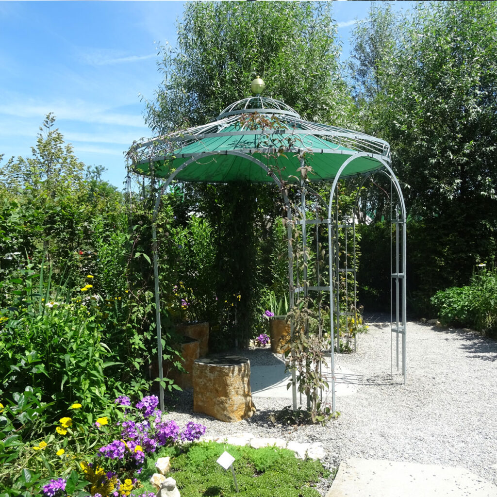 Ein luftiger Pavillon, eine romantische Laube im Garten mit ihrem räumlichen Ambiente sind eine gute Alternative zu einem Sonnensegel oder Sonnenschirm. Lauben und Pavillons können je nach Gartensituation völlig unterschiedlich gestaltet sein, der Stil reicht von rustikal bis hoch elegant. Auch Faltpavillons gehören dazu, wo die Überdachung per Knopfdruck geregelt wird. In minimalistischen oder japanischen Gärten finden sich hochwertige Pavillons aus Holz.